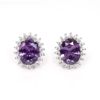 バチカン部分にもストーンを配置し、繊細ながらもゴージャスなピアス。紫のオーラを持つ人は慈愛深いとされ、神秘的なイメージとともに洗練された上品さもプラスします。また、アメジストは調和的な石のため、さまざまなカラーの服装にも合わせやすいのが特徴です。