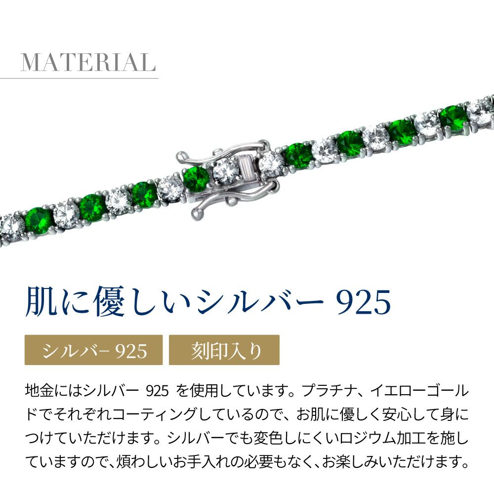 他の画像を見る Designed in New York 【15%OFF】エメラルドカラー テニスブレスレット czダイヤモンド シルバー925 プラチナ イエローゴールド 仕上げ ¥ 21,800 のところ ¥ 18,530 税込 お気に入りに登録する
