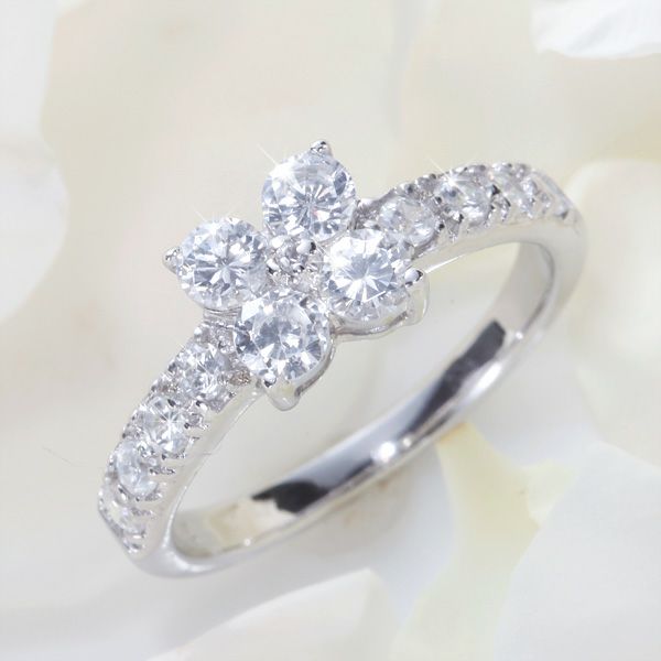細部にまでこだわった繊細な作り ラウンドブリリアントカットの花が指元に可憐に咲きます 中央に咲いた花を、両サイドの宝石が引き立てます